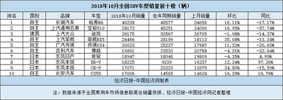 | 10月SUV:哈弗H6領銜自主反彈 CR-V走出"陰霾" |