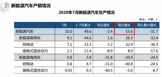 新能源汽車?yán)塾嫯a(chǎn)銷49.6萬輛和48.6萬輛,同比分別下降31.7%和32.8%,降幅比1-6月繼續(xù)收窄。在新能源汽車主要品種中,與上年同期相比,純電動汽車和插電式混合動力汽車產(chǎn)銷同比均呈下降,降幅均比1-6月呈一定收窄。