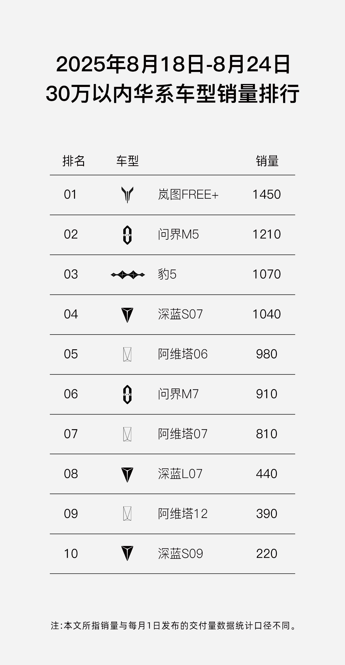 央廣網(wǎng)北京8月27日消息(記者姜鵬)8月第三周(8月18日-8月24日),嵐圖FREE+再創(chuàng)銷量佳績:單周銷量達(dá)到1450輛,再次奪得第34周“30萬內(nèi)華系車型銷冠”,并強(qiáng)勢躋身20-30萬級混動SUV銷量 Top2。截至8月24日,嵐圖FREE+當(dāng)月累計(jì)銷量已達(dá)4110輛,穩(wěn)坐30萬以內(nèi)華系車型銷量Top1。