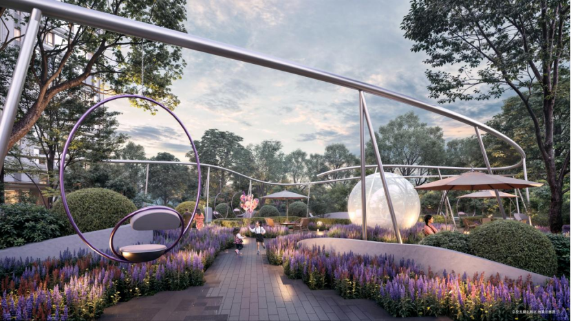 其景觀園林以“風(fēng)谷之境”為主題,打造一系列具有動感的主題場景。像三期南側(cè)將建設(shè)一個(gè)“風(fēng)速運(yùn)動場”,周邊種植高大喬木,業(yè)主可以在綠蔭下享受運(yùn)動帶來的舒適。英式花園“風(fēng)吟花園”則配備了秋千、卡座等,讓孩子們的歡樂和笑聲在綠植花徑中暈開。地勢高、低容積率,疊加較大樓間距,北熙區(qū)三期產(chǎn)品的布局在保障樓宇之間采光、通風(fēng)的同時(shí),為業(yè)主提供出門可親享空中綠島的自然生活體驗(yàn)感。
