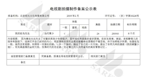 由含胭創(chuàng)作的言情小說《我的鴕鳥先生》將拍劇版,該劇將拍24集,拍攝周期8個月。電視劇內(nèi)容與小說有所區(qū)別,講述了失去雙臂的少年顧銘夕,在好友們的幫助下打開內(nèi)心的故事。小說《陪你到世界終結(jié)》也將拍劇版,該劇將拍26集,拍攝周期3個月。