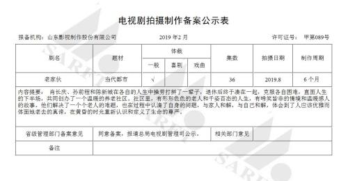其中,山影將拍《老家伙》,備案顯示該劇36集,拍攝周期6個月。此前曾有消息稱,該劇將擬邀張國立、王剛、張鐵林擔綱主演。