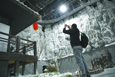 除了眾多親子游客,不少年輕人也特地前來。中影基地6號棚的江南水鄉(xiāng)拍攝小景跟前,聚集了許多年輕人圍觀一對青年體驗拍攝《大話西游》中的經(jīng)典場景。全副武裝扮演至尊寶的是來自北京吉利學院的學生張江?!霸?jīng),有一份真誠的愛情放在我面前,我沒有珍惜,等到我失去的時候才后悔莫及……”當背出了至尊寶的經(jīng)典臺詞時,張江依然覺得“很尬”,難以入戲。導演趕緊上來給他說戲,“這時候劍距離你的喉嚨只有0.01公分,你要仰起頭……”這當口,飾演紫霞仙子的女同學已經(jīng)拿不住劍,手腕松了下來。一個小時過去了,這一條還是沒能過,只好休息一會兒?!叭松谝淮温?,體驗體驗?!睆埥f。