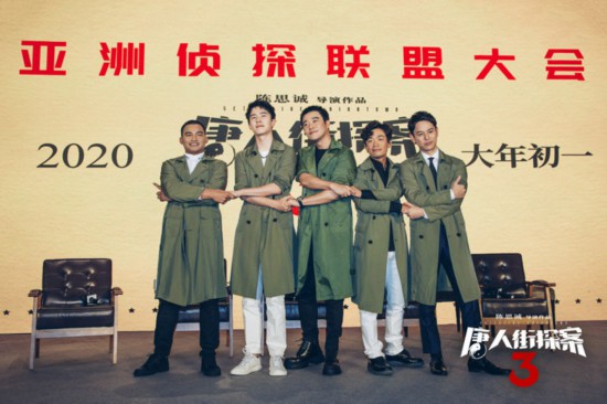電影《唐人街探案3》在廈門舉辦“亞洲偵探聯(lián)盟大會(huì)”,導(dǎo)演陳思誠攜中日泰三國“偵探代表”王寶強(qiáng)、劉昊然、妻夫木聰、托尼賈、尚語賢和邱澤一齊亮相。