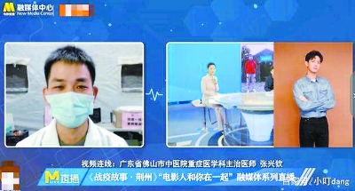 “你好,‘佛山李現(xiàn)’張興欽醫(yī)生,我是荊州李現(xiàn)?!薄罢啤崩瞵F(xiàn)的聲音在《抗疫故事·荊州》直播連線中響起,李現(xiàn)對他說,“有人說我們的眉眼很像,我猜摘掉口罩的你一定更帥。感謝這段時間以來你們在前方的努力與付出,我為你和你的同事們加油,也請你們一定保重?!?/p>