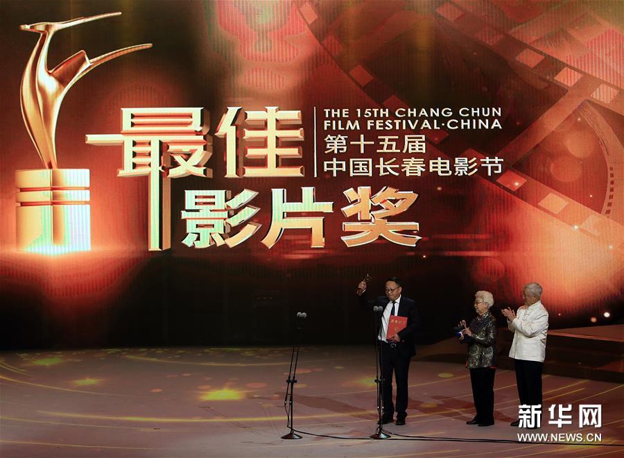 9月10日,獲得最佳影片獎的《我和我的祖國》影片總出品人傅若清(左)出席頒獎典禮。 當日,第十五屆中國長春電影節(jié)頒獎典禮在吉林長春舉行。電影《春潮》獲得金鹿獎評委會大獎,電影《春潮》導(dǎo)演楊荔鈉獲得金鹿獎最佳導(dǎo)演獎,電影《我和我的祖國》獲得金鹿獎最佳影片獎,電影《遠去的牧歌》男主角海拉提·哈木和電影《半個喜劇》女主角任素汐分獲金鹿獎最佳男演員獎和最佳女演員獎。 新華社記者 雒圓 攝