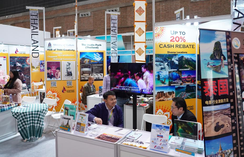 展會現(xiàn)場,裝點著傳統(tǒng)泰式紋樣掛幅的泰國主題展位格外顯眼,吸引不少參展人員駐足?!拔覀兪窃颇系碾娪肮?,想了解一下電影合作政策?!甭牭街袊娪肮镜暮献饕庀?,泰國電影辦公室工作人員介紹起了泰國對電影行業(yè)的相關(guān)激勵政策,吸引外國制作團隊赴泰拍攝。