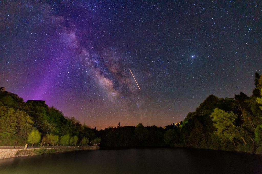 攝影愛(ài)好者在雞公山上的月湖拍攝的星空。(受訪單位供圖)