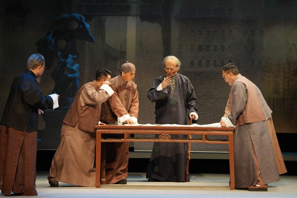 演員在北京長安大戲院表演新編京劇《齊白石》(12月16日攝)。新華社記者 陳斌 攝