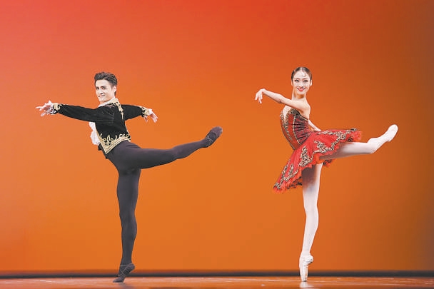 趙欣悅(右)、盧陳奇演繹芭蕾舞劇《堂·吉訶德》選段《婚禮雙人舞》。