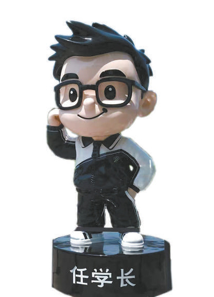 走進北海公園南門,步行沒多遠,就能看見一個兩人高的公仔矗立湖邊。公仔底座上寫著“任學長”,他戴著黑框眼鏡,弧形上翹的嘴型仿佛向游客笑著問好,沿著它背后的湖水碧波望去,遠處就是北海的白塔,為寧靜典雅的古典園林增添了一絲可愛氣息。