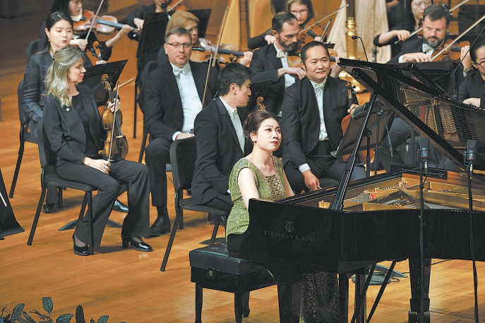 上半場,鋼琴家羅維聯(lián)袂樂團,率先奏響《黃河》。這部脫胎自《黃河大合唱》,由殷承宗、儲望華等音樂家改編的協(xié)奏曲問世幾十年來久演不衰,已成為國際舞臺上中國交響樂的代表作品?!饵S河船夫曲》《黃河頌》《黃河憤》《保衛(wèi)黃河》4個樂章逐次遞進,以沉著雄渾的觸鍵和節(jié)奏,把抗日救亡的記憶、民族復興的光明推向最高峰。