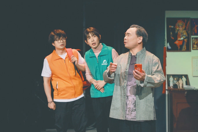 劇中,松巖團(tuán)長(zhǎng)邊講解邊示范被形容為“用腳給了手一個(gè)嘴巴”的京劇武術(shù)動(dòng)作“飛腳”,還有戲曲表演中的“四功五法”;劉旸一會(huì)兒穿著“立人家政”的馬甲當(dāng)“保姆”,一會(huì)兒又穿著時(shí)尚潮服表演“脫口秀”;宇文秋實(shí)戴上假發(fā)是滿口方言的“四川小保姆”,換成帽子又成了白發(fā)蒼蒼的“北京老大爺”。而松巖之子松天碩,在劇中也惟妙惟肖扮演了好幾個(gè)各有亮點(diǎn)的生動(dòng)角色。