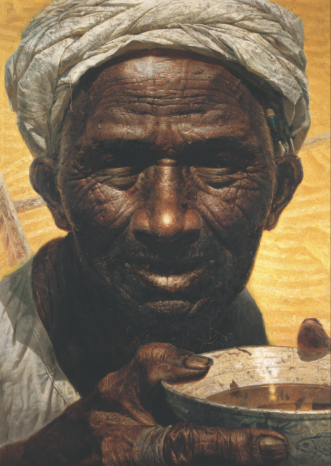 烈日下的一位老農(nóng),在勞動(dòng)的間隙手捧粗瓷碗準(zhǔn)備喝水,大顆晶瑩的汗水流過(guò)他臉上深深的溝壑。展覽展出的羅中立油畫(huà)《父親》以紀(jì)念碑式的宏偉構(gòu)圖、超寫(xiě)實(shí)的手法,飽含深情地刻畫(huà)出中國(guó)農(nóng)民的典型形象。1980年,羅中立以《父親》震撼中國(guó)畫(huà)壇,并獲第二屆全國(guó)青年美展一等獎(jiǎng)。數(shù)十年來(lái),這張臉龐深深打動(dòng)了無(wú)數(shù)中國(guó)人的心,成為改革開(kāi)放以來(lái)中國(guó)現(xiàn)實(shí)主義藝術(shù)創(chuàng)作的一道豐碑。