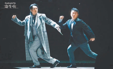 以倒敘開頭的舞臺(tái)劇《寄生蟲》延綿著一種玄幻神秘的未來(lái)感,有人看到了命運(yùn)翻盤,有人看到了無(wú)間道的凄苦輪回:大難不死的基澤為了拯救墮入深淵的父親,把他父親打破的枷鎖重新綁在了自己的身上,努力成為曾經(jīng)痛恨的人。為了迎接斬殺黑暗的那道曙光,寧愿再度沉入一個(gè)漫長(zhǎng)的苦役。