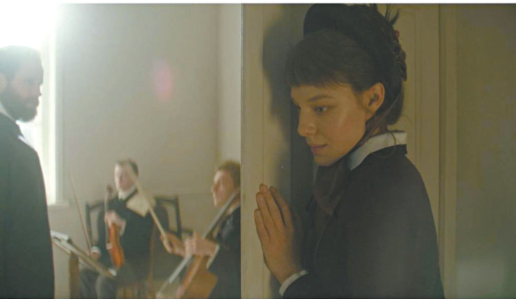 原本以為此片配樂會(huì)大量選用“老柴”原作的精彩樂段,誰知導(dǎo)演偏偏反其道行之,將柴科夫斯基本人的作品減之又減,只有家中琴房、音樂廳等為數(shù)不多的幾個(gè)場(chǎng)景,短暫地出現(xiàn)了老柴的作品片段。這顯然是導(dǎo)演熟讀作曲家生平及安東尼娜書信后的刻意為之。從史料中看,安東尼娜對(duì)于柴科夫斯基的那些偉大作品所知甚少,依她的天資,絕難與天才丈夫在音樂創(chuàng)作上擦碰出怎樣熱烈的火花。片中“老柴”音樂的缺席,亦象征了這場(chǎng)親密關(guān)系中對(duì)話與陪伴的不復(fù)在場(chǎng)。所謂“此時(shí)無聲勝有聲”,以“無”摹寫空空蕩蕩的愛情與婚姻,亦是再恰切不過。