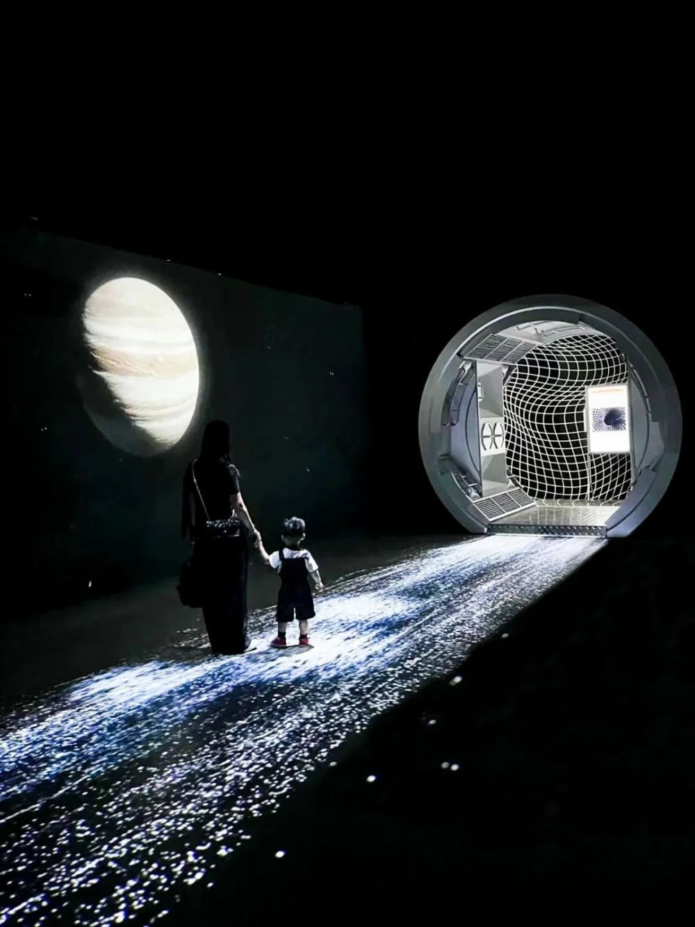 展覽自2021年7月首次登陸深圳,到訪成都、重慶、武漢、南京等一線城市,累計觀展人次已超過80萬余人,北京站為巡展以來規(guī)模最大的站點(diǎn)。在展覽現(xiàn)場,火星場景、太空電梯、星際穿越、月海潮汐、蟲洞力場等多元場景,讓觀眾在享受一場夢幻、新奇的感官沉浸之旅同時,獲得對中國航天的全新認(rèn)識。