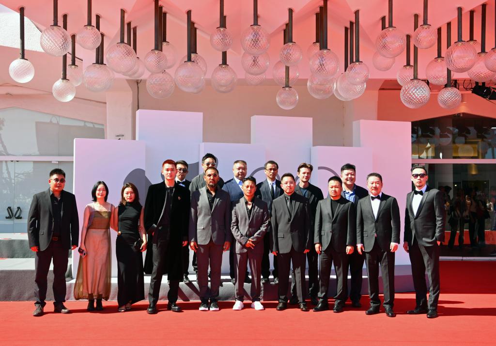 9月6日,在意大利威尼斯,電影《雪豹》主創(chuàng)人員亮相首映式紅毯。新華社記者 金馬夢妮 攝