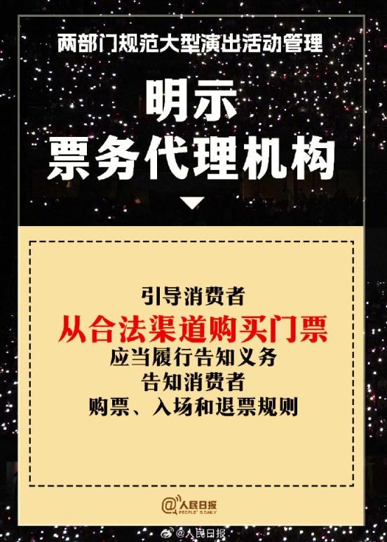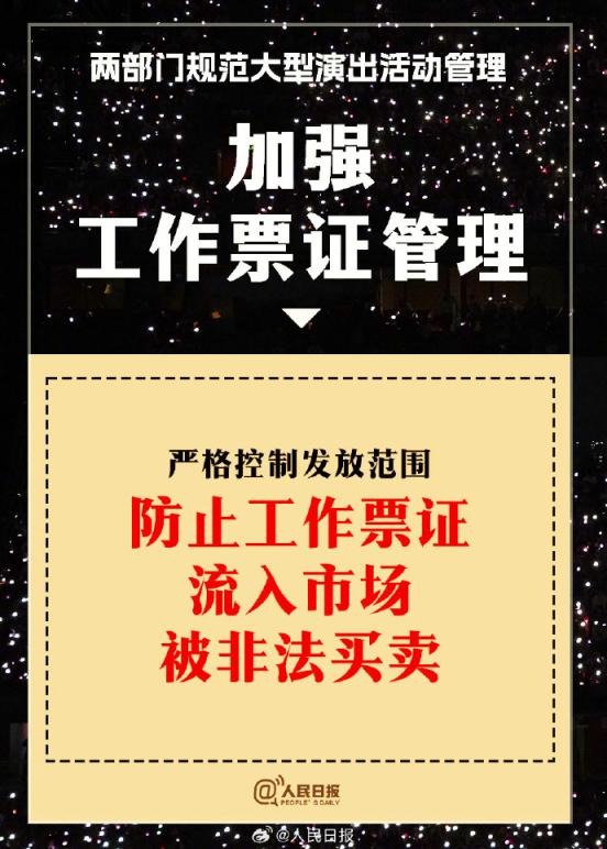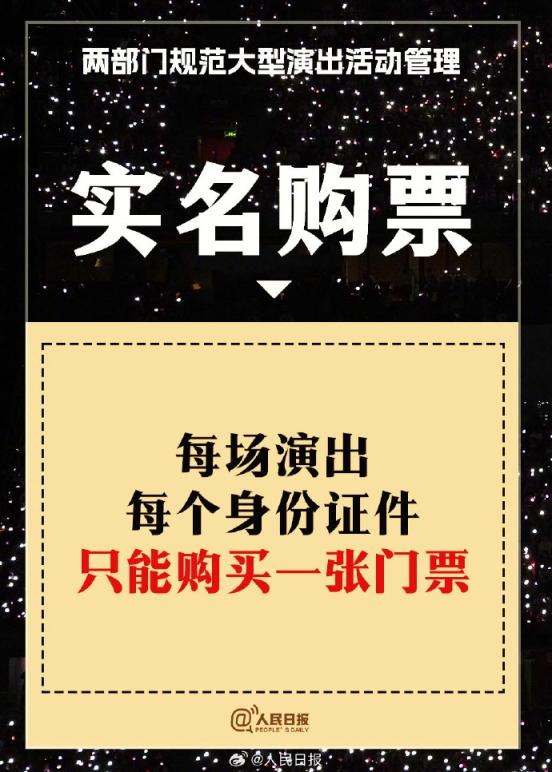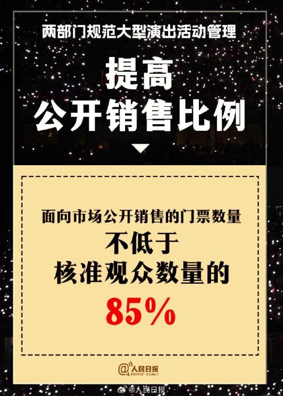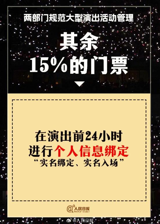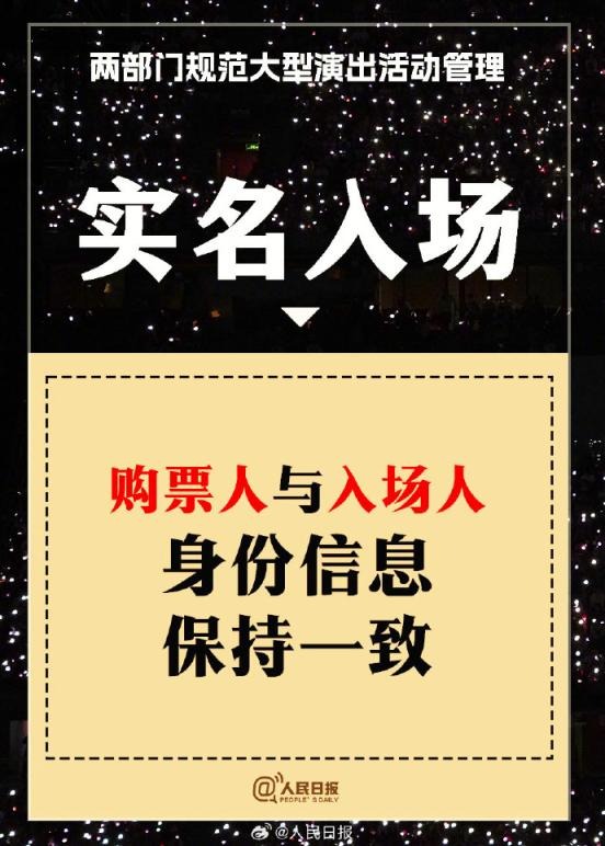 ?兩部門通知:①實(shí)名購票、實(shí)名入場。5000人以上演唱會購票人和入場人必須一致;②大型演出要設(shè)定梯次退票標(biāo)準(zhǔn);③公開銷售門票不低于核準(zhǔn)觀眾數(shù)量的85%;④嚴(yán)禁假唱、假演奏。更多↓↓↓詳戳,周知!