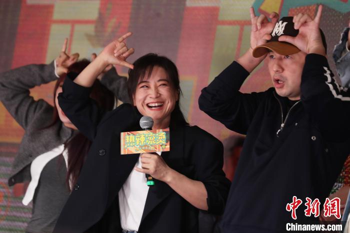 賈玲現(xiàn)場秀拳擊天賦。中新網(wǎng)記者 張亨偉 攝