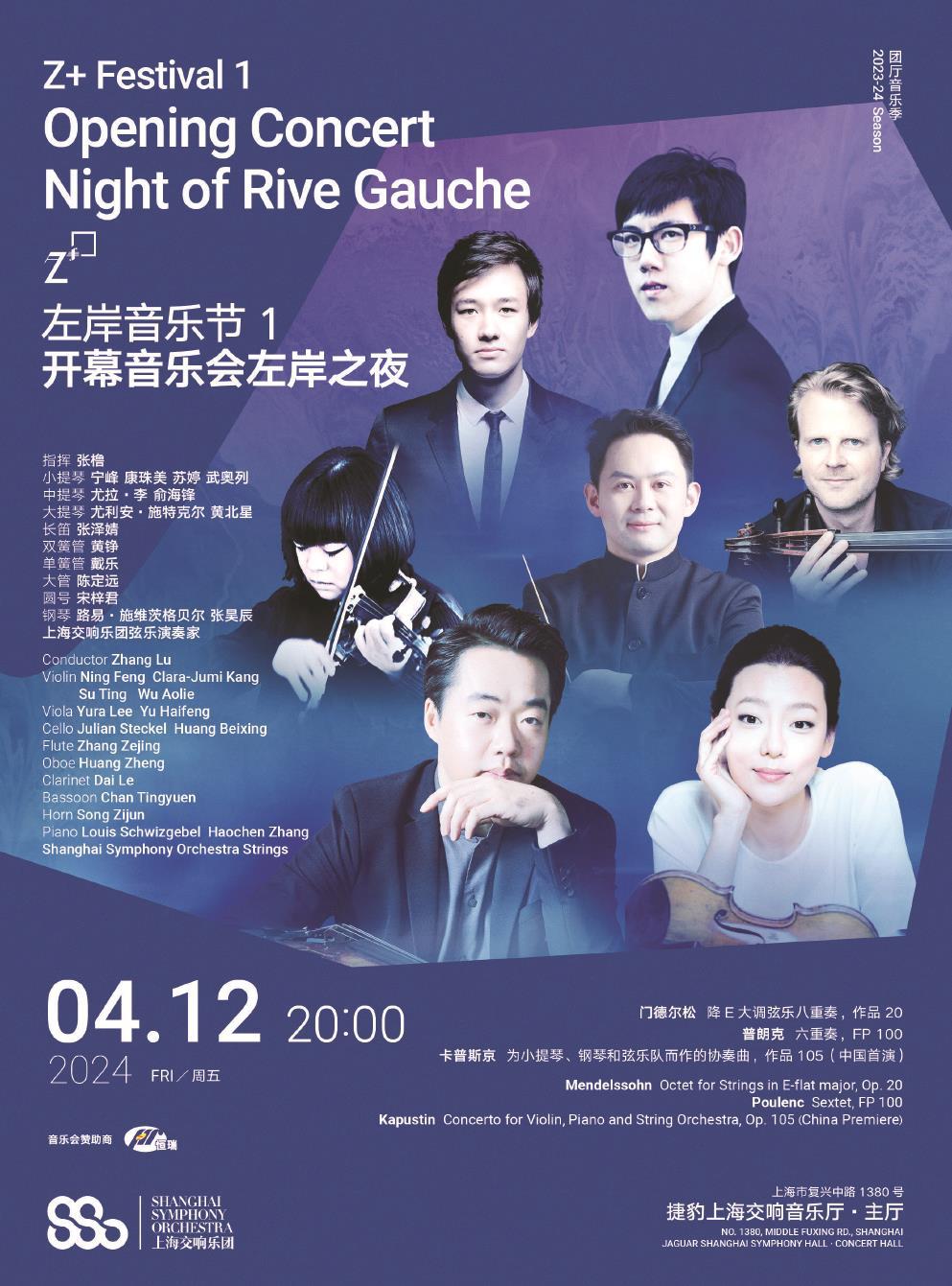 一批蜚聲國際的演奏家們將齊聚左岸音樂節(jié),于弓弦交錯(cuò)之間奏響春日美好音符。4月12日,左岸音樂節(jié)開幕音樂會——左岸之夜將在捷豹上海交響音樂廳舉行。上半場,寧峰、康珠美領(lǐng)銜八位音樂家獻(xiàn)上門德爾松創(chuàng)作生涯的第一部杰作《降E大調(diào)弦樂八重奏,作品20》,這是一部在室內(nèi)樂音樂史中具有里程碑意義的經(jīng)典之作。下半場,著名小提琴家寧峰和鋼琴家張昊辰將在左岸音樂節(jié)完成萬眾矚目的首次合作——在上海交響樂團(tuán)助理指揮張櫓的執(zhí)棒下,聯(lián)袂上交的演奏家們共同完成尼古拉·卡普斯京的《為小提琴、鋼琴和弦樂隊(duì)而作的協(xié)奏曲,作品105》中國首演。