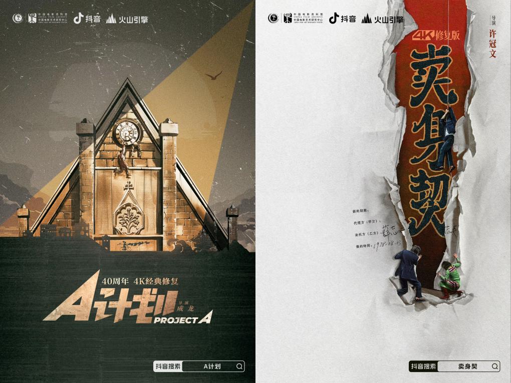 4K版《A計劃》《賣身契》電影海報。新華社發(fā) 《A計劃》《賣身契》分別上映于1983年、1978年,距今已四十多年。兩部影片的原始拍攝底片,在香港完成4K規(guī)格掃描后,歷經(jīng)中國電影資料館的數(shù)字修復(fù),火山引擎的AIGC視覺大模型技術(shù)修復(fù),以及雙方合作的藝術(shù)修復(fù)等環(huán)節(jié),最終從清晰度、流暢度、色彩等方面實現(xiàn)4K效果,為影迷帶來不同以往的視覺體驗。