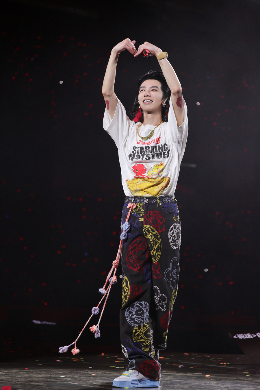 其實,這個“飯撒牌”背后有個小秘密,幾天前他在青島演唱《國王與乞丐》時,一個歌迷舉著牌子,上面寫著“華晨宇,感到幸福就比心”。華晨宇說,“今天我想對在場的所有火星人說,如果你們感到幸福,可以對我比個心嗎?”歌迷們紛紛比心回應。