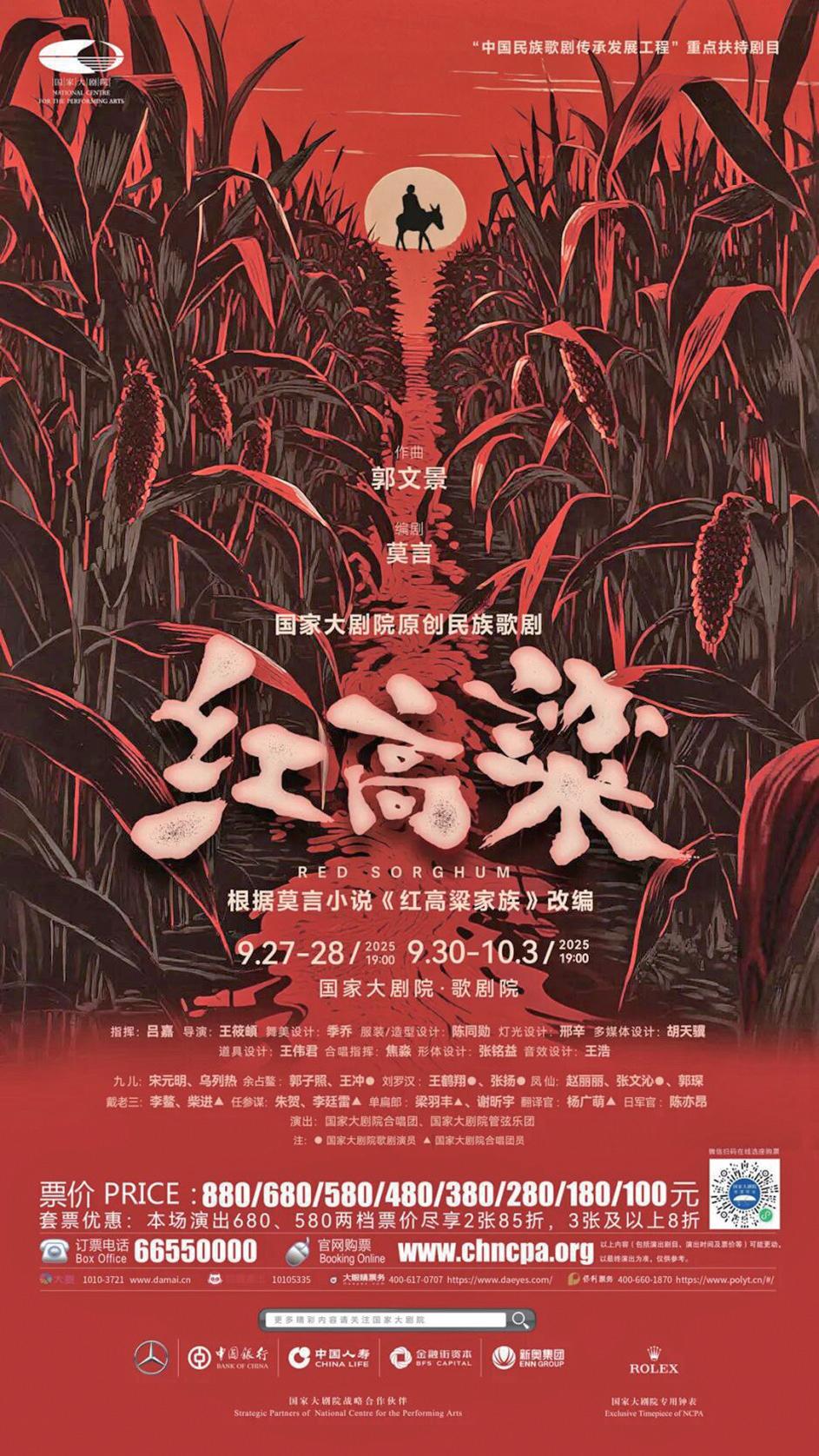 為大力弘揚(yáng)英雄主義、愛(ài)國(guó)主義,在2025年紀(jì)念中國(guó)人民抗日戰(zhàn)爭(zhēng)暨世界反法西斯戰(zhàn)爭(zhēng)勝利80周年之際,國(guó)家大劇院隆重推出原創(chuàng)民族歌劇《紅高粱》,即將于9月27日至10月3日迎來(lái)世界首演。作為國(guó)家大劇院創(chuàng)作推出的第23部原創(chuàng)歌劇,該劇以文學(xué)經(jīng)典的全新舞臺(tái)呈現(xiàn),歌頌永恒熾熱的民族精神。