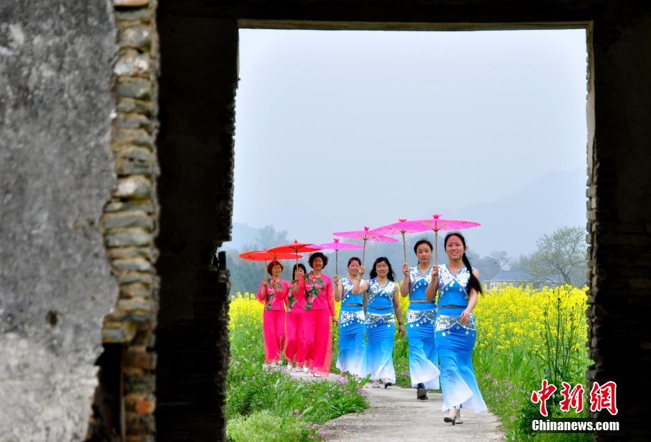 3月20日,江西省德興市??阪?zhèn)杜村婦女在田間花海“走秀”。當(dāng)日,江西德興市海口鎮(zhèn)杜村一批家庭婦女以千畝油菜花海為舞臺(tái),展示自己的才藝形象,希望宣傳家鄉(xiāng)的自然生態(tài)與人文歷史,擴(kuò)大旅游知名度和影響力。德興市??阪?zhèn)杜村交通便利,自然風(fēng)光優(yōu)美,村內(nèi)有歷史古跡和名木古樹(shù)。 胡敦煌 攝