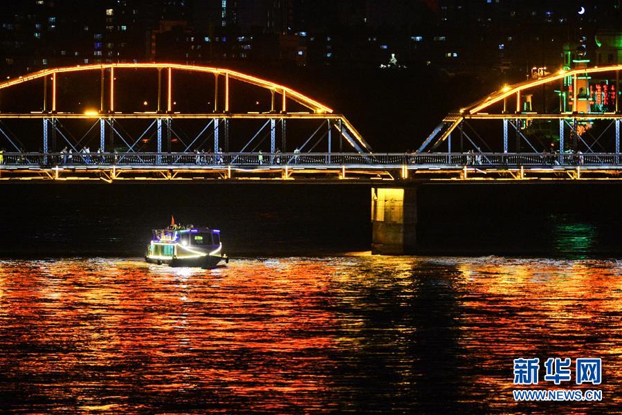 6月14日,一艘游輪從黃河蘭州段中山橋下穿過。自6月12日起,蘭州黃河游輪夏季夜航航線正式開通。據(jù)了解,作為黃河蘭州段水上旅游重點線路,該航線由蘭州市城關(guān)區(qū)蘭州港碼頭和白塔山碼頭始發(fā),每晚20時起開行,全程約6公里,運行時長50分鐘左右。游客可以乘坐豪華游輪欣賞黃河夜景,感受蘭州黃河風(fēng)情線別樣魅力。新華社記者 陳斌 攝
