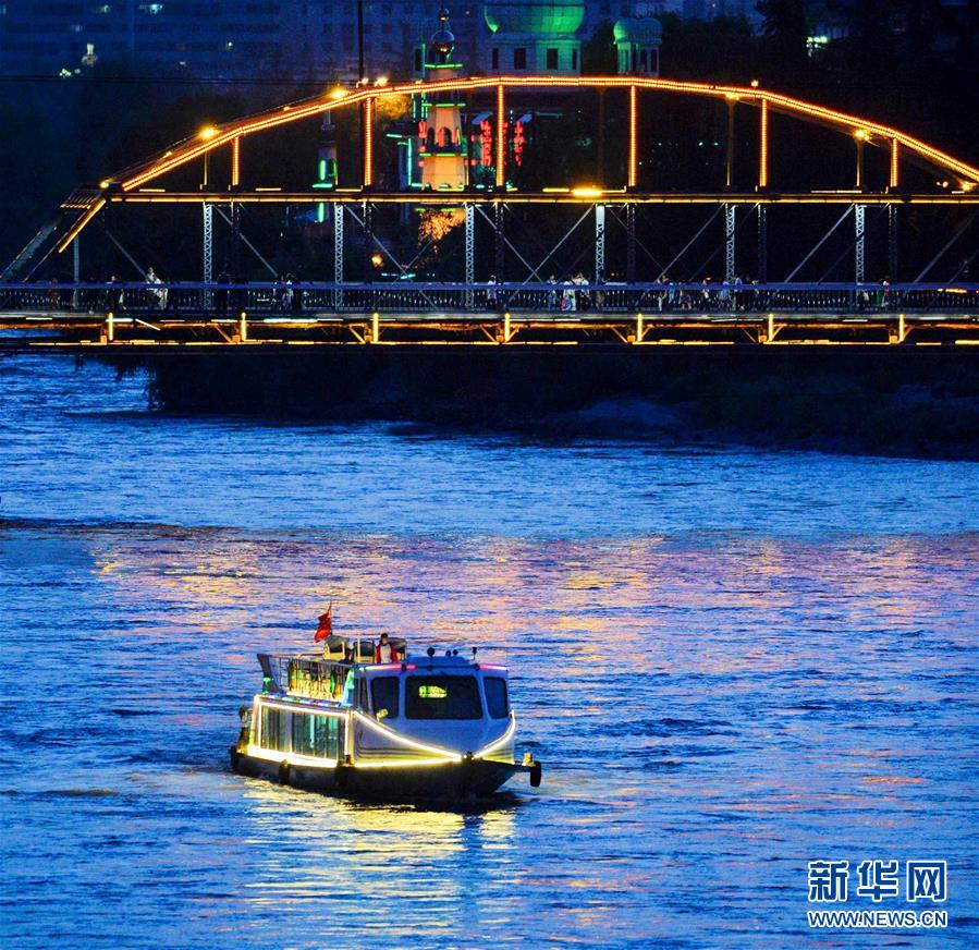 6月14日,一艘游輪從黃河蘭州段中山橋下穿過。自6月12日起,蘭州黃河游輪夏季夜航航線正式開通。據(jù)了解,作為黃河蘭州段水上旅游重點線路,該航線由蘭州市城關(guān)區(qū)蘭州港碼頭和白塔山碼頭始發(fā),每晚20時起開行,全程約6公里,運行時長50分鐘左右。游客可以乘坐豪華游輪欣賞黃河夜景,感受蘭州黃河風(fēng)情線別樣魅力。新華社記者 陳斌 攝
