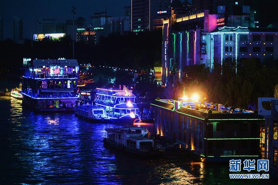 6月14日,一艘游輪從黃河蘭州段中山橋下穿過。自6月12日起,蘭州黃河游輪夏季夜航航線正式開通。據(jù)了解,作為黃河蘭州段水上旅游重點(diǎn)線路,該航線由蘭州市城關(guān)區(qū)蘭州港碼頭和白塔山碼頭始發(fā),每晚20時起開行,全程約6公里,運(yùn)行時長50分鐘左右。游客可以乘坐豪華游輪欣賞黃河夜景,感受蘭州黃河風(fēng)情線別樣魅力。新華社記者 陳斌 攝