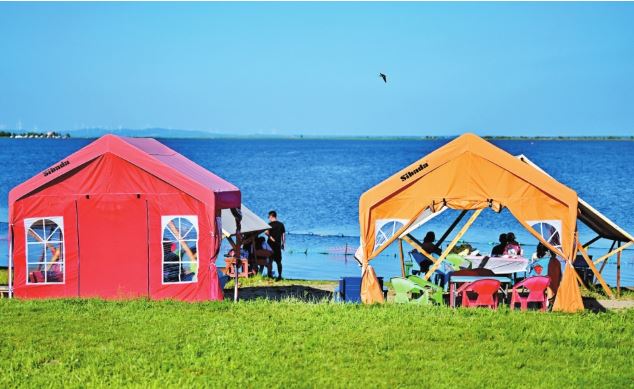 近年來,哈爾濱不斷挖掘歷史底蘊(yùn),加快歷史文化街區(qū)改造和老建筑活化利用。文旅新題材新亮點不斷涌現(xiàn),哈爾濱旅游逐步實現(xiàn)從“冬季爆點”向“四季長紅”轉(zhuǎn)型。圖為人們在哈爾濱市松花江畔的帳篷中消暑休閑。