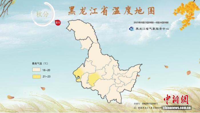 2025年“秋分首日”黑龍江省溫度地圖(2025年9月23日8時(shí)至24日8時(shí))。 黑龍江省氣象局供圖