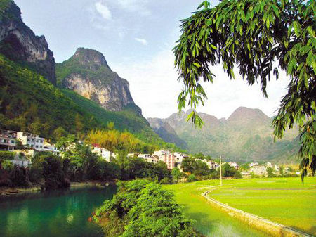 巴馬長壽村盤陽河逶迤地流淌,串起了一個個小村落