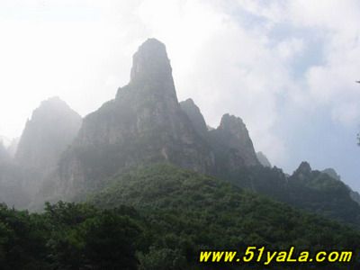 五老峰史稱東華山,歷史上為北方道教名山,海拔1809.3米,奇峰險(xiǎn)峻,需攀鏈而上,屬丹霞地貌。這里是層層峰巒,森林古木,各種生物覆蓋著整個(gè)山野?;t草綠,山光水色,風(fēng)光旖旎非凡,故有“北有五臺觀庫存宇,南在五老看風(fēng)光”之說。游人往縣城西南遠(yuǎn)眺,見有東錦屏峰、西錦屏峰、太乙坪峰、棋盤山峰四山峰仙態(tài)神姿,隱現(xiàn)于云煙蒼茫之中,將高1809.3米的玉柱峰環(huán)抱其中,“有偃蹇傴樓之伏”,猶如五位老人抱拳作揖迎貴賓之勢,故名五老峰。