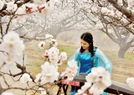 在近日舉辦的繁峙趙莊杏花節(jié)上,一名身穿古裝的女子正在杏花爛漫的杏園里進行古箏彈奏表演。近年來,作為全國“一村一品”示范村的繁峙縣趙莊村,種植杏樹面積達5200畝。去年,全村出售白水大杏樹苗40 萬株、白水大杏150 萬公斤,總收入達800 多萬元,人均年收入達到13000 元。(喬偉 攝)