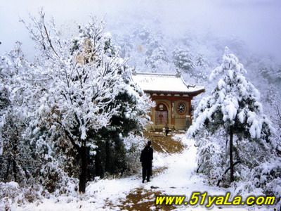 北武當(dāng)山主峰四周幾乎都是陡壁懸崖,只有一條人造“天梯”可攀。來(lái)到山腳下,過(guò)五里黃土、五里沙路,便是1400余級(jí)就山鑿筑的石階,凡險(xiǎn)峻之處,設(shè)有鐵索扶手。石階一線疊置,從下仰視,宛如“天梯”。游人攀登,每一步都可聽(tīng)到悠揚(yáng)頓挫的“石音”,形成獨(dú)特的“石樂(lè)”絕景。沿著石階,奇松異石、廟宇石刻,掩沒(méi)在蔥郁的山林植被之中,相間點(diǎn)綴,相映成趣。主要的山石景觀有:古猿望日、石豬受難、九龍出洞、石象守山、天壺傾露、石羊朝圣、石龜下蛋、石虎、石蛤蟆、龜蛇斗智等。最令人稱(chēng)奇的是“龜蛇斗智”奇觀,相傳神龜和青蛇不安心修道,互相格斗,經(jīng)過(guò)七七四十九天的麈戰(zhàn),神龜節(jié)節(jié)敗退,青蛇步步緊逼。其時(shí),恰逢真武大帝返宮,見(jiàn)狀,輕輕用手指一點(diǎn),龜蛇便動(dòng)彈不得,從此永久停留在這里,成千古一絕——“蛇石”虎視眈眈,“龜石”尾臨懸崖,萬(wàn)斤重石,峭立崖畔,用力一推或經(jīng)風(fēng)一吹,便搖搖欲墜,令人心懸,所以又稱(chēng)風(fēng)動(dòng)石,為我國(guó)罕見(jiàn)的景觀之一。主要的奇松景觀有:鴛鴦松、迎客松、托天松、母子松等。最使人嘆為觀止的是“擎天探海松”,其松立于石階半道,樹(shù)身技分兩杈,一直刺青天,一枝瞰群峰。近金頂?shù)悄咸扉T(mén)石階,旁邊陡崖上刻有“喬松”二字,據(jù)載為清代道光年間永寧州牧王繼賢手跡。現(xiàn)存喬松樹(shù)樁直徑近1米,可以想見(jiàn)其昔日雄姿。主要的懸崖峭壁有:千仞壁、舍身崖、鷹嘴崖等。還有呈垂直分布的植被,其色彩和花期隨季節(jié)變化,給北武當(dāng)山披上了“春粉、夏艷、秋紅、冬白”的盛裝。登臨武當(dāng)之巔,一覽眾山,但見(jiàn)遠(yuǎn)山蒼茫,近日含黛,松風(fēng)撲面,白云飄逸;只聞松濤陣陣,山泉潺潺,鳥(niǎo)語(yǔ)唧唧,似琴弦輕撥;夏秋之季,如晴空萬(wàn)里,金頂之下,叢林景觀相間,似七彩織錦;白云遠(yuǎn)處,群山連綿,猶如萬(wàn)龍翻騰,極為壯觀。