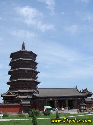 應(yīng)縣木塔佛宮寺釋迦塔位于山西省應(yīng)縣城內(nèi)西北佛宮寺內(nèi)。俗稱應(yīng)縣木塔。塔總高67.31米,是我國(guó)現(xiàn)存時(shí)代最早的木結(jié)構(gòu)高層建筑.佛宮寺釋迦塔建于后晉天福年間,遼清寧二年(1056年)重修。