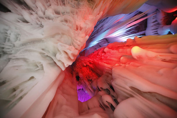 專家們稱,該冰洞位列全國一萬多個洞穴中僅有的九個冰洞之首。洞內(nèi)制冷機制最強、冰儲量最多,現(xiàn)開發(fā)近百米。分成上下五層,看冰洞須穿棉衣、戴手套,小心翼翼地游覽。通過鉆冰洞,下冰樓梯,過冰棧,可到各層觀光。每層可容納數(shù)十人。洞內(nèi)四周全是冰。由冰形成的冰柱、冰簾、冰瀑、冰花、冰佛、冰床、冰鐘、冰人、冰菩薩等,千奇百怪、不一而足。洞內(nèi)大大小小的景致或玲瓏剔透,或晶瑩奪目,或婀娜多姿,或雄偉壯麗,無不令人驚嘆,堪稱一個冰的絕妙世界。