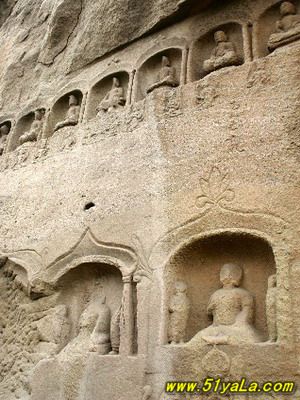 天龍山石窟在山西太原市西南40公里天龍山腰。天龍山亦名方山,海拔高1700米。這里風(fēng)光秀麗,歷史上曾是北齊皇帝高洋之父高歡的避暑宮。四周山巒起伏,遍山松柏蔥郁,山頭龍王石洞泉水蕩漾,山前溪澗清流潺潺。天龍山石窟創(chuàng)建于東魏(公元534—550年),高歡在天龍山開鑿石窟,高歡之子高洋建立北齊的晉陽(yáng)為別都,繼續(xù)在天龍山開鑿石窟。隋代楊廣為晉王,繼續(xù)開鑿石窟,唐代李淵父子起家于晉陽(yáng),建造石窟達(dá)到高峰。