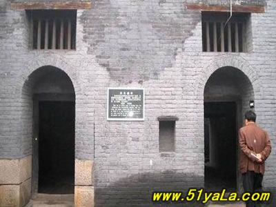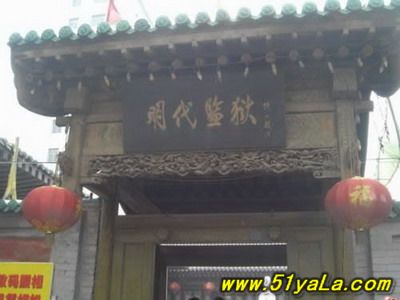 “蘇三監(jiān)獄”在今洪洞縣政府院內西南,亦即明洪洞縣衙西南角。一進掛有“明代監(jiān)獄”匾額的大門,首先看到的便是蘇三的塑像,外院當年監(jiān)獄的辦公場所,右邊的院落是普通監(jiān)牢,中間是過道,兩邊共有監(jiān)牢十余間,過道頂上布有鐵絲網,網上掛有銅鈴,一有犯人企圖越墻逃跑,便會觸響銅鈴。過道的盡頭,正對的是獄卒的值班室,右面的墻上有獄神的供位,傳說當年囚犯入獄都要參拜獄神,就是獄神下面的墻基處,有一小洞,是當年運送尸體的出口,犯人在獄中病死或是被打死,是不能從大門抬出去的,只能從這個小洞拉出去。過道盡頭的左邊,便是死囚牢的大門,死囚牢雙門雙墻,門上畫有狴犴,狴犴是龍的兒子,長得卻象老虎,因此人們誤稱為“虎頭牢”,大約是因為龍生九子,子子不同,狴犴專門掌管刑獄,大門只有一米六高,所有進入死囚牢的人都要在狴犴像前低頭,顯示對法律的敬畏。進了門洞,里面還有一道門,而這兩道門卻是一扇從右開,一扇從左開,不明就里的囚犯如果越獄,往往出了第一道門卻怎么也打不開第二道門,一個小小的改動就能起到拖延犯人越獄時間的作用,不能不佩服古人的智慧。進入死牢院,右面是一堵高墻,左面就是當年關押蘇三的牢房,里面有蘇三的塑像。死囚院的中央還有當年蘇三坐監(jiān)時洗衣的水井和石槽,井口留有一道道繩索磨下的印記,井口只有半尺多寬,這是為了防止死囚投井自殺。據說,右面的高墻里灌裝的都是流沙,如果犯人想要挖墻越獄,流沙便會從挖開的小口中源源不斷地流來,使其難以挖通圍墻。1964年我國著名考古學家王冶秋先生曾在洪洞考察確認,蘇三監(jiān)獄為我國罕見的明代監(jiān)獄,并題詩曰:“虎頭牢里羈紅妝,一曲攪亂臭水漿。王三公子今何在?此處空留丈八墻?!笔陝觼y期間,蘇三監(jiān)獄被拆毀。為了使“蘇三監(jiān)獄”這一僅存的明代監(jiān)獄得以保留,洪洞縣人民政府后做出了修復“明代蘇三監(jiān)獄”的決定。修復事宜于1984年5月開始,同年10月竣工。