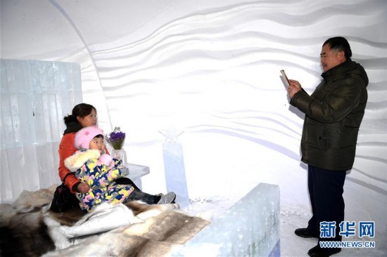 12月24日,在內(nèi)蒙古根河市敖魯古雅鄂溫克民族鄉(xiāng),游客在冰雪酒店里拍照留念。當(dāng)日,第五屆中國(guó)冷極節(jié)在內(nèi)蒙古自治區(qū)根河市開幕。根河市素稱“中國(guó)冷極”,當(dāng)?shù)乩帽┵Y源,并結(jié)合獨(dú)特的鄂溫克民族風(fēng)情,打造冬季旅游項(xiàng)目,為游客帶來(lái)不一樣的冰雪體驗(yàn)。新華社記者劉磊攝