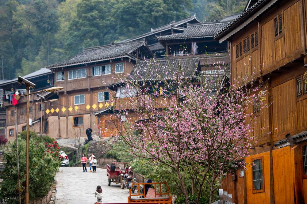 ?? 2024年3月10日,游客在貴州省從江縣高增鄉(xiāng)占里侗寨內(nèi)游玩。CICPHOTO/吳德軍 攝