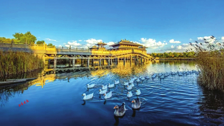 大同是山西的北大門(mén)。《黑神話:悟空》27個(gè)取景處中,大同占有5處,分別是云岡石窟、華嚴(yán)寺、懸空寺、善化寺、永安寺。夏末初秋,沐浴著清涼夏都的清風(fēng),走在大同的街頭,藍(lán)天澄澈、綠意蔥蘢、碧水盈波……這樣藍(lán)、綠、清交織的美景,繪就大同多彩生態(tài)畫(huà)卷。