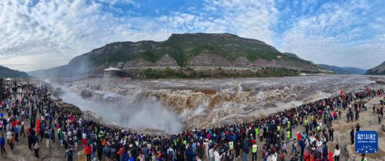 國慶長假期間,位于山西省吉縣和陜西省宜川縣交界處的黃河壺口瀑布迎來眾多游客,觀賞“黃河之水天上來”的壯觀景象。