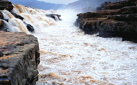 走近瀑布,可以感受到水霧輕輕拂過(guò)臉頰,帶來(lái)一絲絲涼意。黃河水從高處緩緩落下,濺起層層細(xì)膩的水珠,它們?cè)陉?yáng)光的照射下閃爍著晶瑩的光芒,如同細(xì)密的珠簾懸掛于山谷之間。站在瀑布邊,聆聽著水流的潺潺聲,讓人不禁沉醉于這份寧?kù)o與壯美之中。