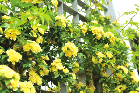 黃木香是薔薇科薔薇屬植物,攀緣小灌木,高度可達6米?;ㄐ⌒?,多朵成傘形花序,花重瓣黃色。黃木香的生長速度非???,輕輕松松就可以長成一面花墻,它的枝條柔軟,像一個個藤蔓精靈,在園藝師的奇思妙想下,或成為墻壁精美的外衫,或可將一個普通的架子攀援成蜿蜒