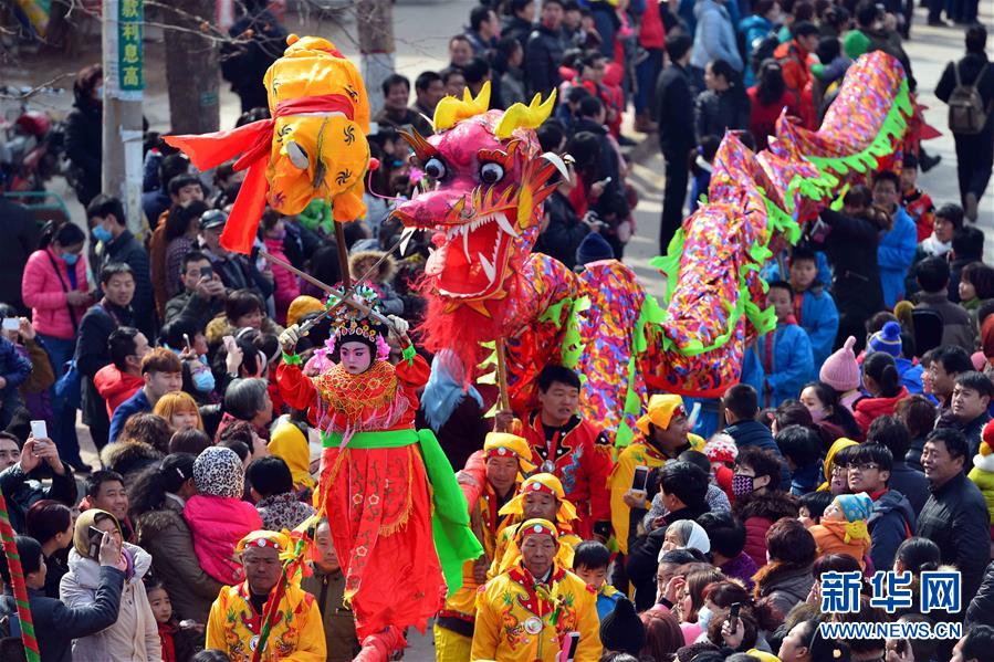 2月21日,社火隊(duì)在進(jìn)行巡游拜年。當(dāng)日,有著千年歷史的傳統(tǒng)村落——山東省章丘市三德范村組織31個社火隊(duì)舉行社火巡游拜年活動,在元宵佳節(jié)來臨之際為鄉(xiāng)親們送祝福。新華社記者 郭緒雷攝