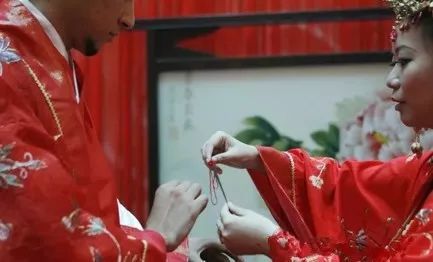 婚禮喝交杯酒也要用同心結(jié),亦是結(jié)發(fā)同心髻之延伸,《東京夢華錄》:“用兩盞以彩結(jié)連之,互飲一盞,謂之交杯酒。飲訖,擲盞并花冠于床下,盞一仰一合,欲云大吉”。即用同心結(jié)拴在兩個酒杯上,交臂而飲。酒喝完后,與花冠擲于新床下,如果酒杯一個仰,一個覆,就是大吉的征兆。同心結(jié)還用于人們的閨閣裝飾,表達對白頭偕老、永結(jié)同心的愛情生活的向往和追求。